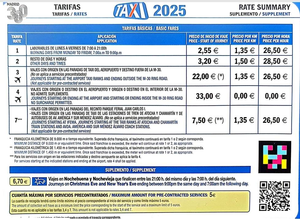 - Desplazamiento, destino u origen al aeropuerto de Barajas.